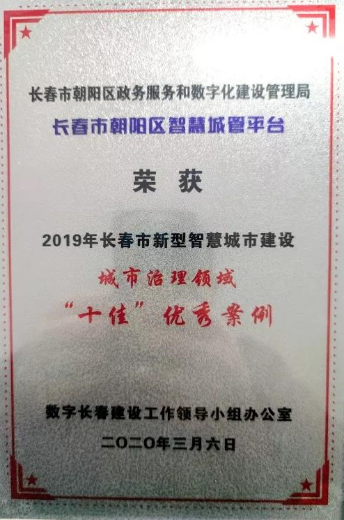 为推进数字长春建设持续、创新、健康发展,发掘行业先进实践,为数字经济发展和智慧社会建设提供有效支撑,长春市政务服务和数字化建设管理局面向全市征集了一批创新能力突出、典型示范性强、应用成效明显、社会经济效益显著的优秀案例,树立“新型智慧城市”创新典范。经过预审、大众评选、以及市数字办邀请数字化和智慧城市建设领域的专家组成专家委员会的终评,长春市朝阳区智慧城管平台、朝阳区智能化网络服务平台分别获得长春市新型智慧城市建设城市治理领域“十佳”优秀案例、长春市新型智慧城市建设惠民服务领域“十佳”优秀案例。
