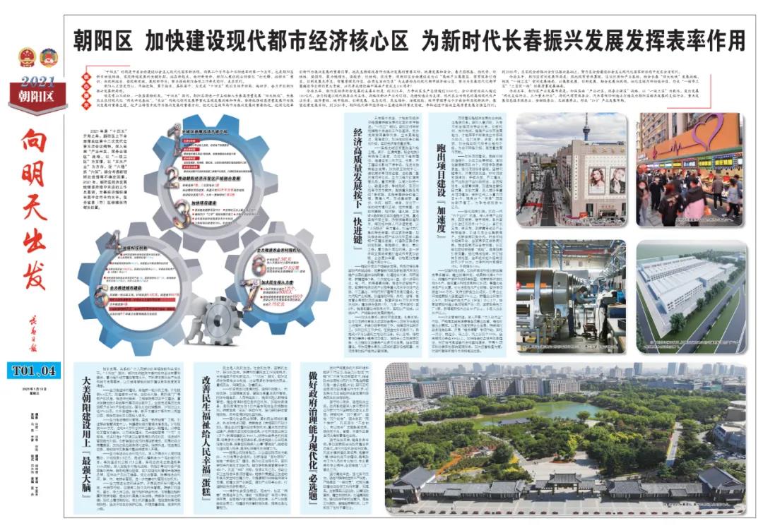 咬定青山不放松,一张蓝图绘到底。“十四五”期间,朝阳区将进一步主动融入长春高质量发展“四大板块”、长春农业农村现代化“两大示范基地”、“长公”同城化协同发展等重大区域发展战略和布局,坚持把推动高质量发展作为振兴发展的重要主题,把产业转型升级作为振兴发展的重要方向,把优化区域布局作为振兴发展的重要依托,把深化改革创新作为振兴发展的重要引擎,把民生持续改善作为振兴发展的重要目标,统筹发展和安全,着力固根基、扬优势、补短板、强弱项,聚力稳增长、强投资、优结构、促消费,将朝阳区全面建设成为以“高端产业集聚区、商贸服务引领区、创新发展先导区、智慧管理先行区、品质生活示范区”为主要标志的现代都市经济核心区,努力为长春现代化都市圈建设作出新的更大贡献,以优异成绩迎接中国共产党成立100周年!