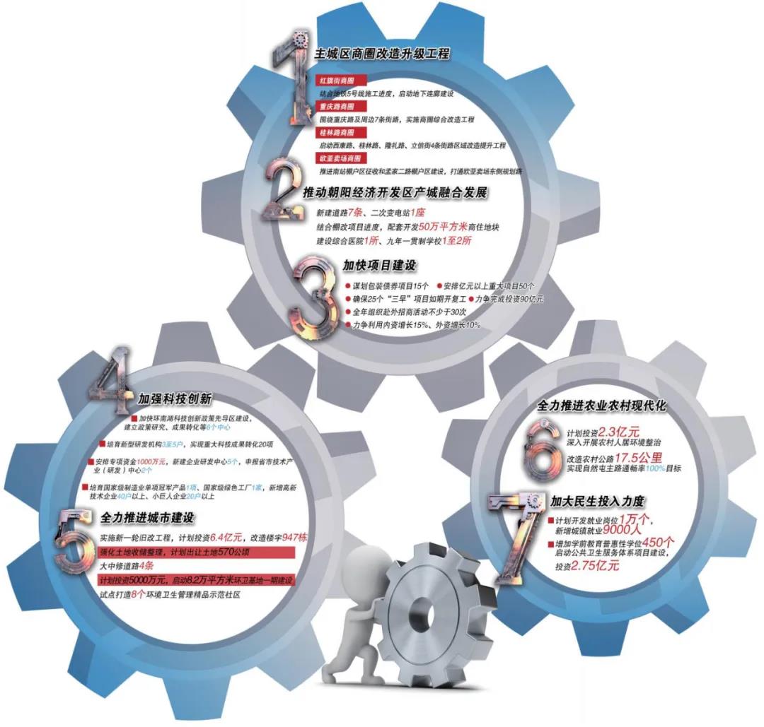 ——强化社会民生保障。紧扣民生领域的重点、热点和难点问题,持续推进《幸福朝阳行动计划》。健全监测预警和动态帮扶机制,重点关注贫困边缘户,持续巩固脱贫攻坚成果。计划开就业岗位1万个,新增城镇就业9000人。扶持社会养老机构发展,培育多元化养老服务体系。推进残疾人公共服务信息化改革,探索实现残疾人办事“零跑动”。继续强化退役军人服务、医保社保等民生保障工作。