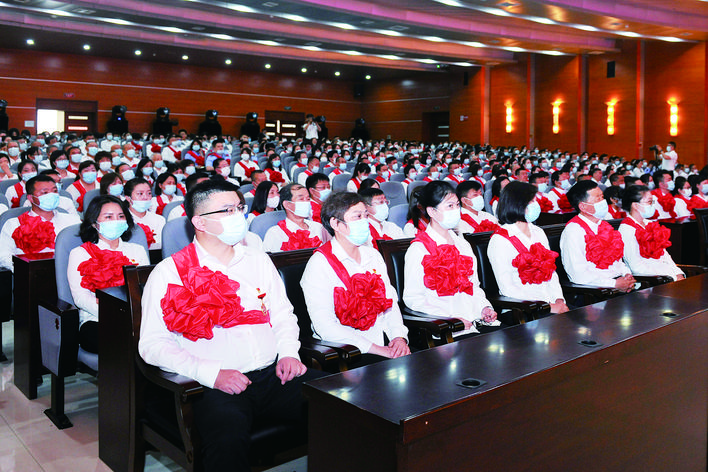 朝阳区“两优一先”表彰大会上,99名优秀共产党员、60名优秀党务工作者、57个先进基层党组织获表彰。