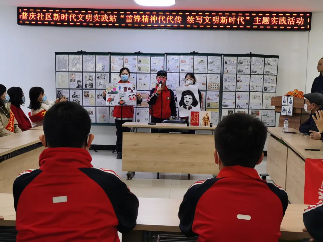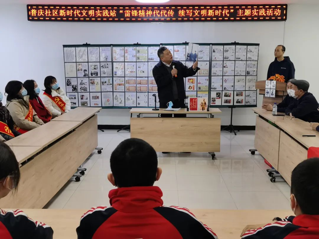 普庆社区新时代文明实践站组织开展“雷锋精神代代传 续写文明新时代”主题实践活动,邀请慧达小学70余名师生和居民共同参与,社区文献集邮研究会为此次活动提供支持。