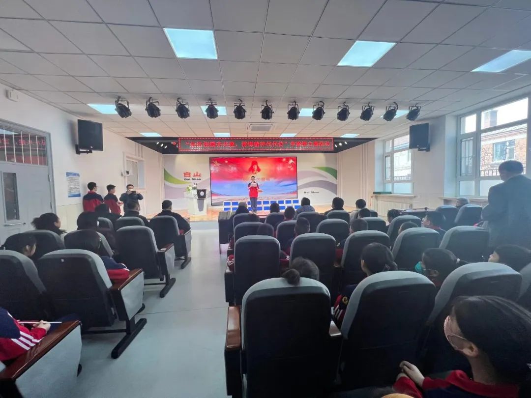 杏花邨社区新时代文明实践站联合党建联盟单位明德教育集团白山分校开展“社区校园共建 雷锋精神代代传”学雷锋主题活动,志愿者为学生们讲述雷锋精神,100余名师生参加活动。