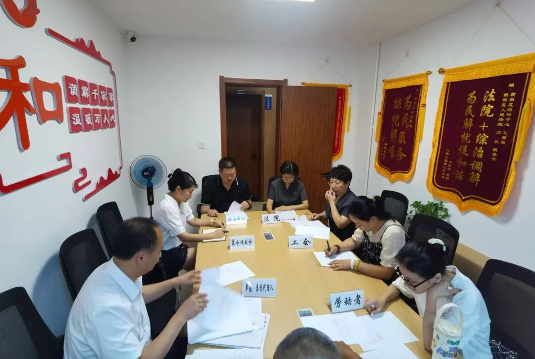 区综治中心了解情况后,立即联合驻中心法官深入研判,很快找准矛盾核心:劳资双方对薪资核算标准、奖金计发方式存在认知偏差,加上长期沟通不畅,导致双方对立情绪不断升级。为高效化解这起群体性纠纷,区综治中心迅速牵头启动“法院+工会+调委会+人民调解”协同机制,一场“圆桌调解会”在调解室正式展开。