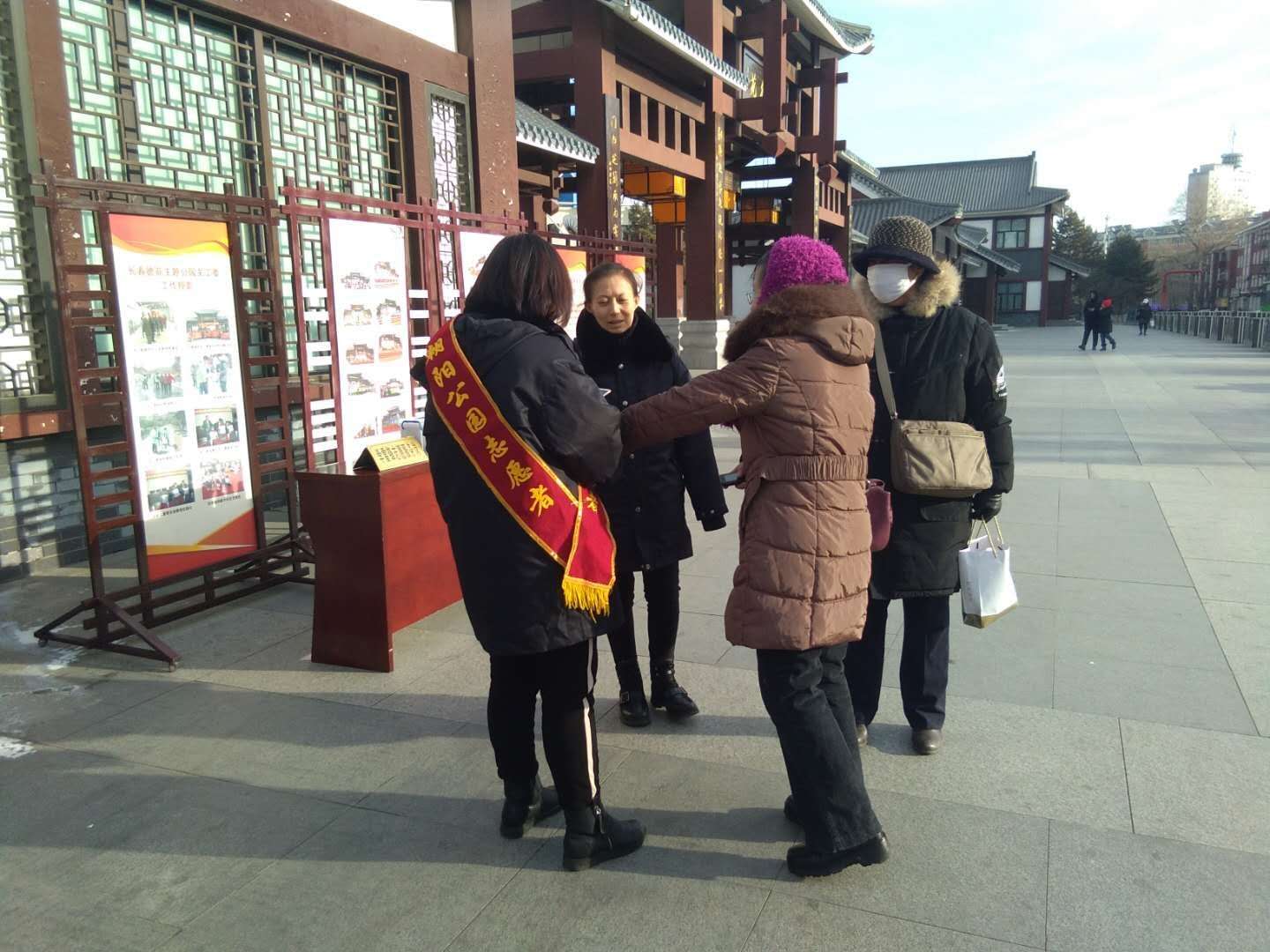 国检期间,朝阳公园志愿者不怕苦不怕累,在零下20多度的情况下,坚持站好雷锋岗,为市民和游人发放创城宣传标语和宣传物品,并且做好园内卫生无死角,在公园内每隔10米左右就能看见公园职工在巡视园内卫生和不文明行为,发现白色垃圾及时处理,发现不文明行为,及时劝解及制止。全体干部职工振奋信心,全力以赴,将最好的精神面貌,最真实、最美丽的景象展现出来。